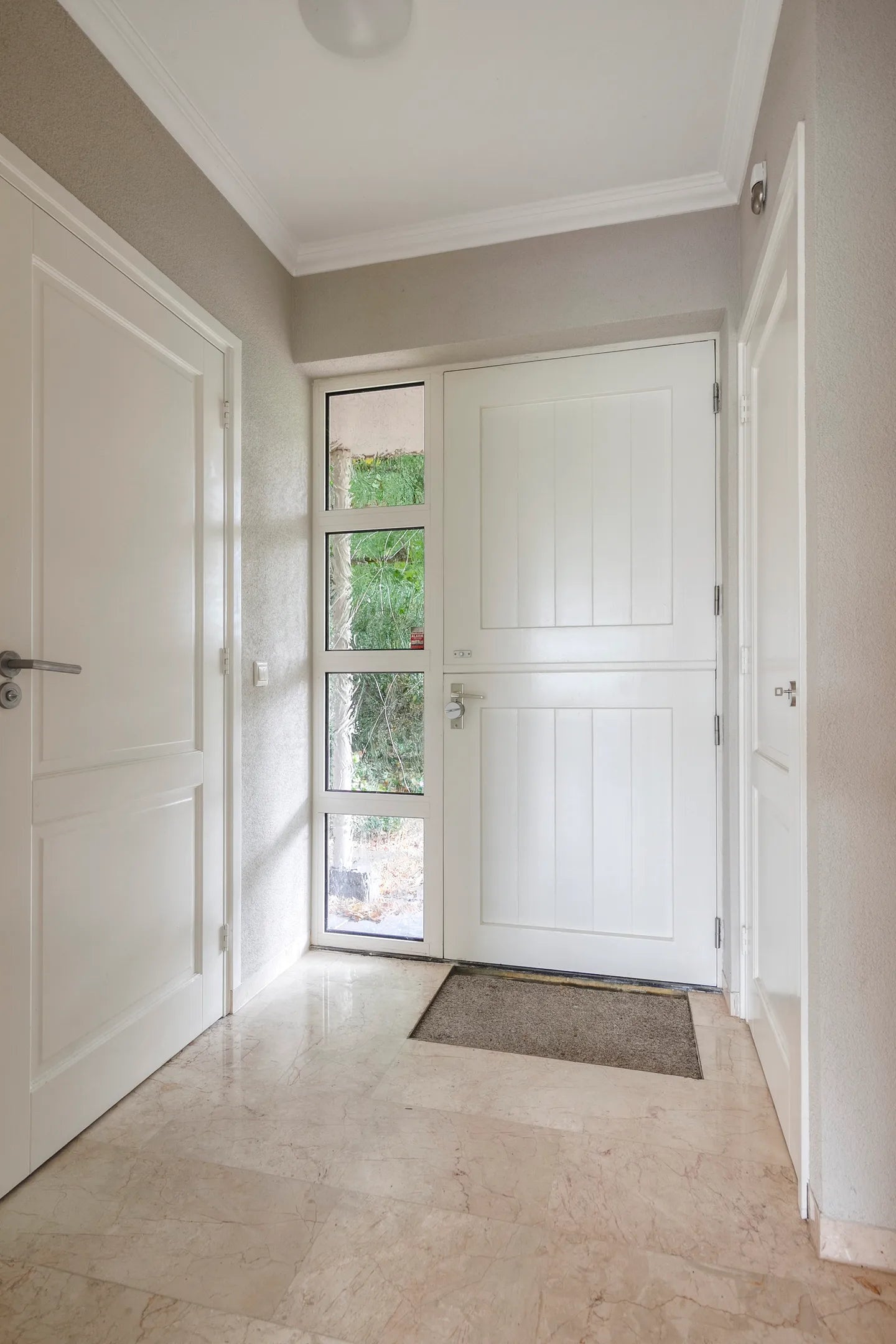 Via een oprijlaan bereikt u de woning. Hier vindt u voldoende parkeergelegenheid en toegang tot de garage. U betreedt de woning via een ruime entree met garderobe, meterkast en toilet.